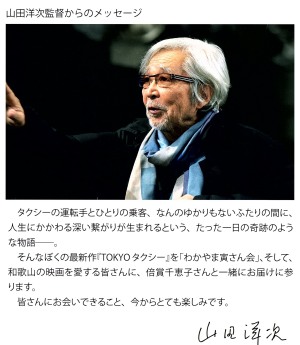 | 2025年10月23日 第4回 和歌山特別先行上映会 【上映作品】 映画『TOKYOタクシー』 (全国公開は11月21日から) 【会 場】 ジストシネマ和歌山 一回目:上映 13:00~14:43 上映後舞台挨拶14:45~15:15 〈入れ替え〉 二回目:上映前舞台挨拶16:00~16:30 上映 16:30~18:43 舞台挨拶 ゲスト 山田洋次監督 倍賞千恵子さん 北山雅康さん 土山正人さん 〈ちんどん通信社による 来場者歓迎ちんどんパフオーマンス〉 【主 催】わかやま寅さん会 【協 力】 松竹 ジストシネマ和歌山 麦の郷印刷 (株)山ノ木 (株)三和繊維 (有)東西屋 県立和歌山商業高校放送部 |
